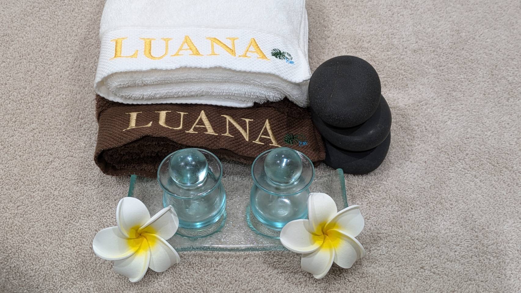遠赤外線効果のある玄武岩を温めて、 身体の上に置いたり、オイルを使ってゆっくりと滑らせるなどの手技をロミロミに組み込んでいきます。